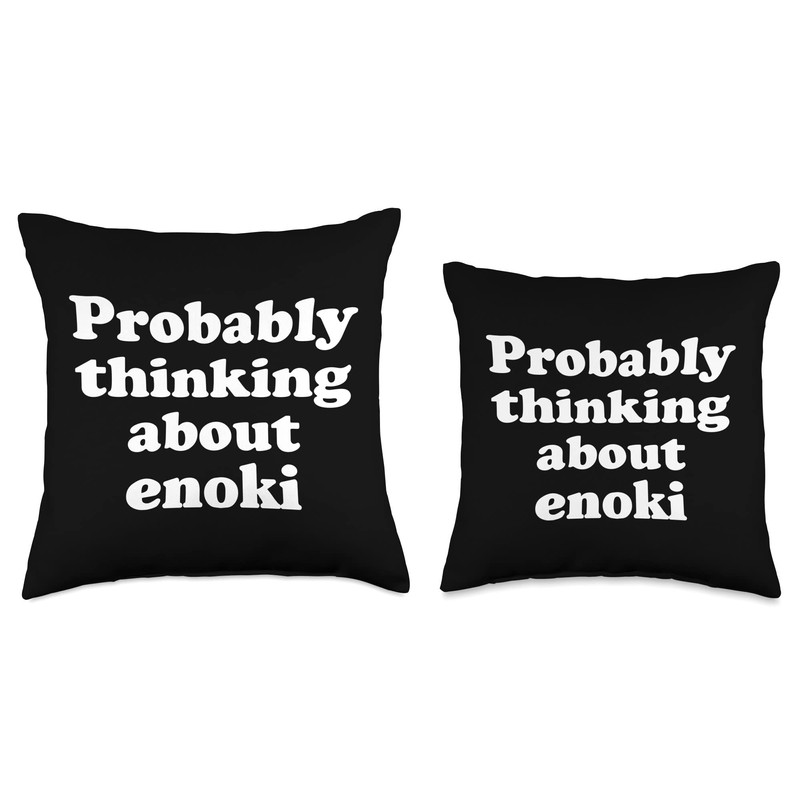I Love Enoki Mushrooms Designs By JAC Probably Thinking About Enoki Throw Pillow, 16x16, Multicolor