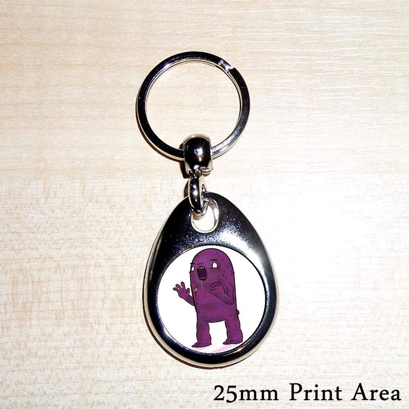 - Double sided 25mm print encased in a metal key ring.