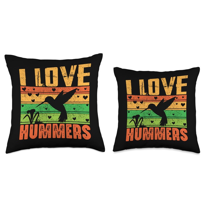 I Love Hummers Colibri Hummingbird Wildlife Retro Sunset Throw Pillow