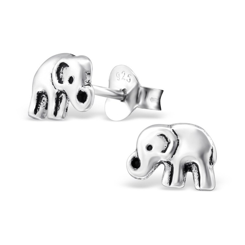 - Minimalist elephant stud earrings with a oxidized antique finish. Made from hypoallergenic solid sterling silver