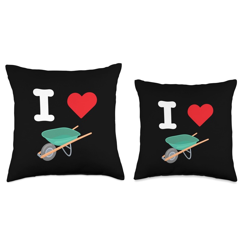 I Love Wheelbarrows Construction Single Wheel Transport Throw Pillow