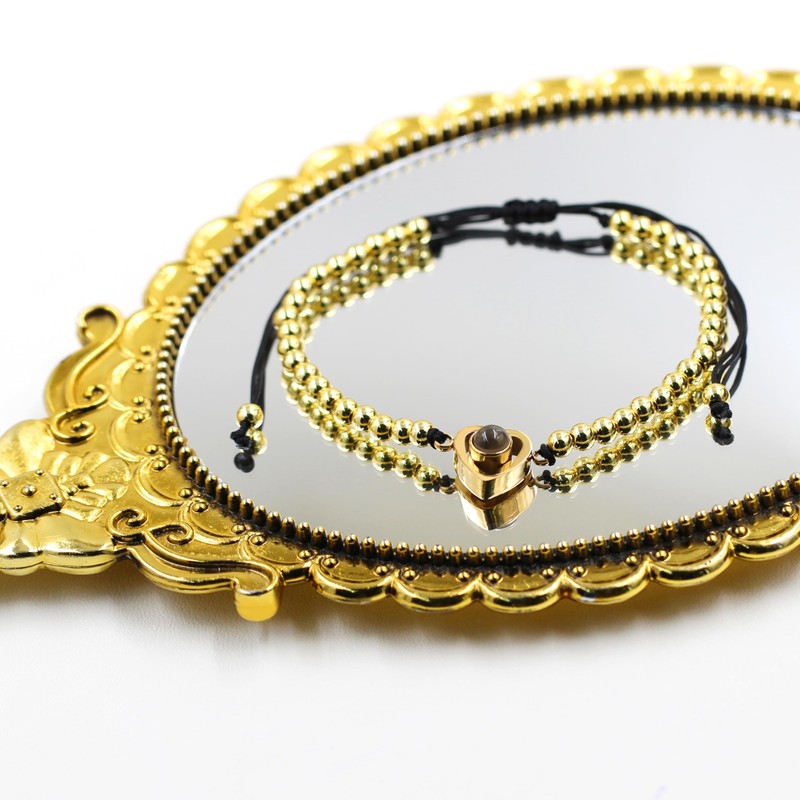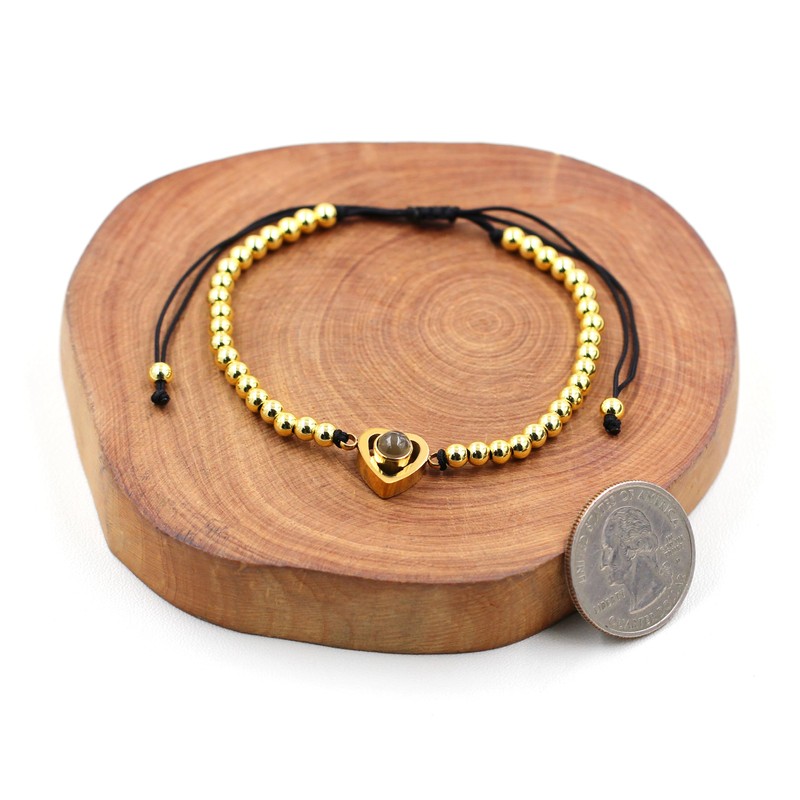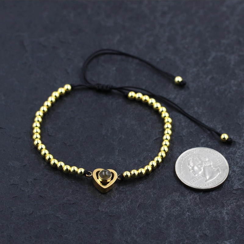 I Love You 100 Languages Heart Projection Bracelets Adjustable, 4mm Copper Beaded Bracelet Braided String Relationship Gifts Y4173 (Gold)