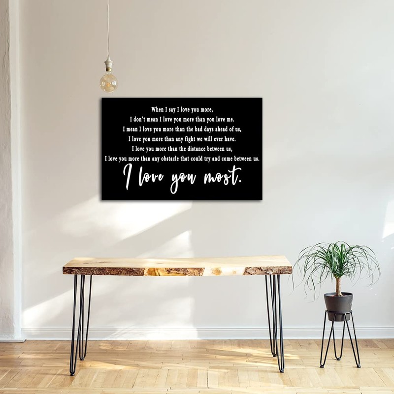 I Love You More Wall Art, When I say I Love You More Canvas Print,I Love You Most Decor,Black and White Master Bedroom Picture,Over The Bed Typography Sign,Living Room Decal,Frame Easy to Hang