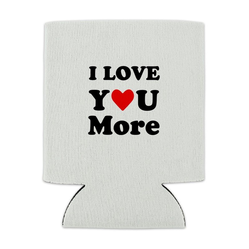 I Love You More with Heart Can Cooler - Drink Sleeve Hugger Collapsible Insulator - Beverage Insulated Holder