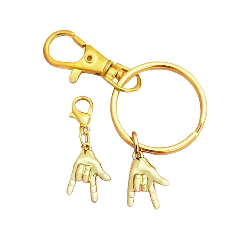 I Love You Sign Language Gold Zipper Pull or Keychain Keyring, ASL I Love You Hand Sign (1. Love Hands Keychain and Zipper Pull)