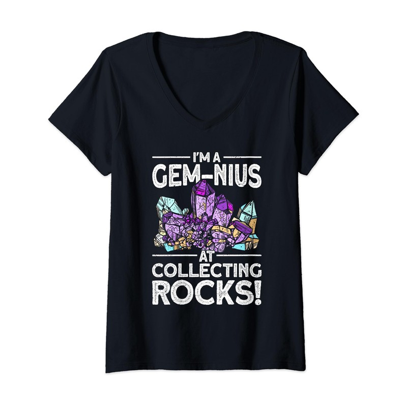I'm A Gem-Nius At Collecting Rocks Geologist Geode Hunter V-Neck T-Shirt