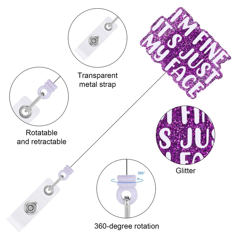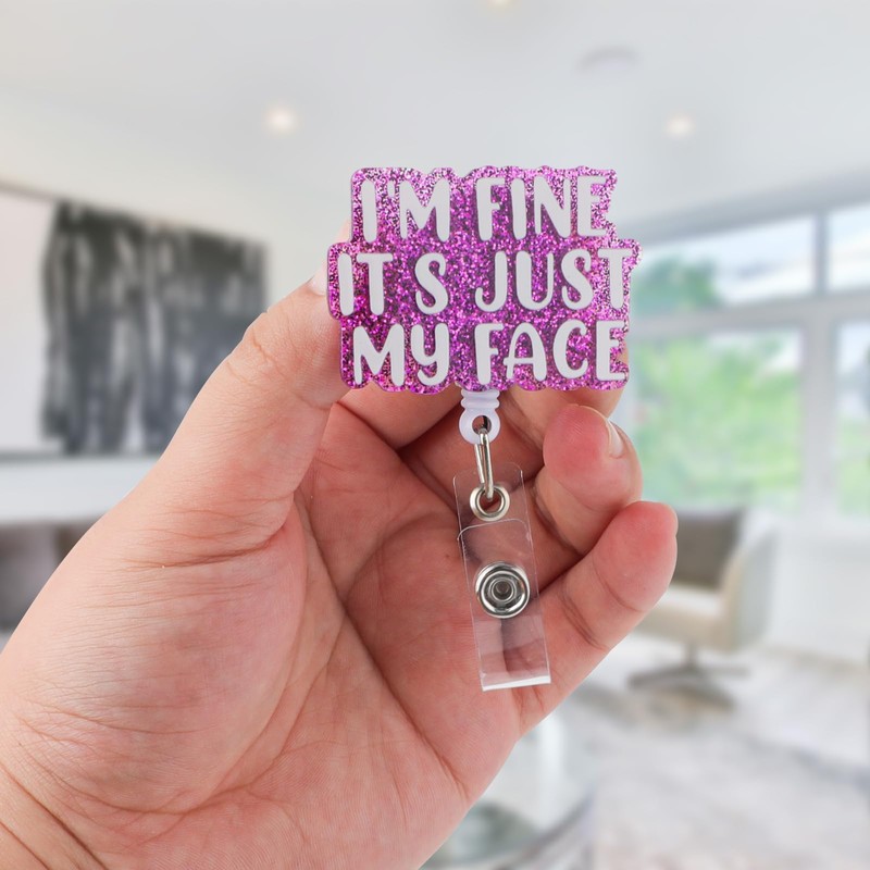 - Funny Design: This glitter badge reel with the content [I'm fine, it's just my face] is so funny and cute that it can show your personality and temperament and add some fun to the work environment. Perfect for medical staff.