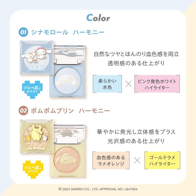 [i'm meme Official Store] Highlight Korean Cosmetics Sanrio Shine Catcher Multi Highlighter (Pompompurin (Orange/Yellow), 1 Piece (Package Included 1.6 oz (45 g) ))