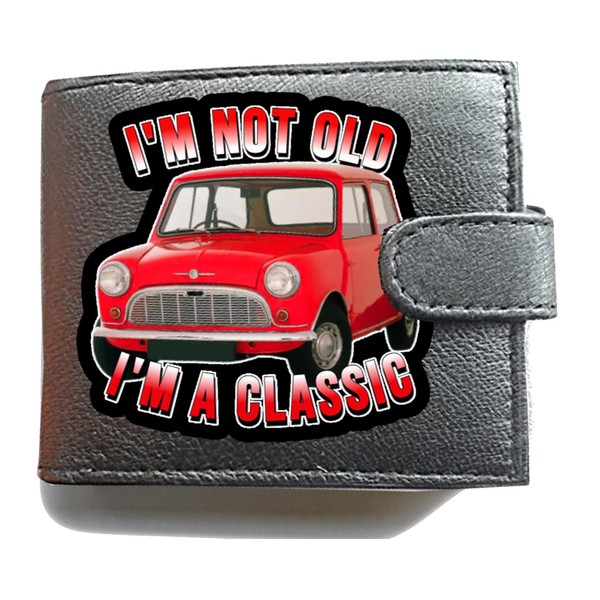 I'm Not Old I'm A Classic Small British Car Anti RFID Theft Wallet Black Soft Leather Large Coin Pocket