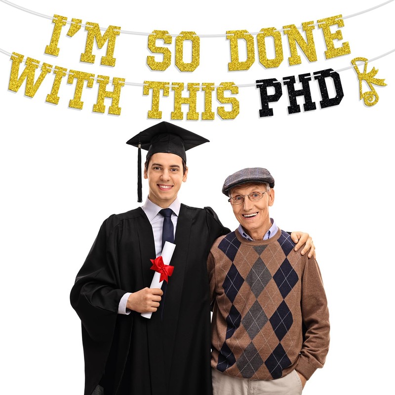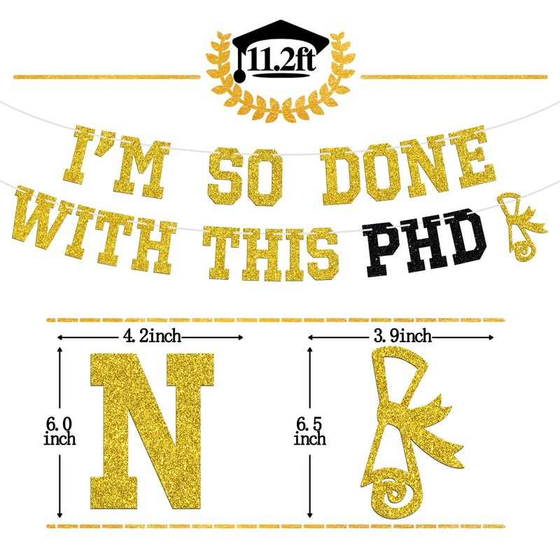 - 【I'm So Done with this PHD】: This banner with glitter letters is perfect for 2024 Graduation Party Decoration. Hope it add more gladness to your party.