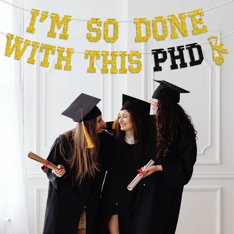 I'm So Done with this PHD Banner - Class Of 2024 Graduation Party- Grad Cap Congrats Grad 2024 - Congrats Doctor of Philosophy Graduate Party Decoration Supplies, Gold Glitter