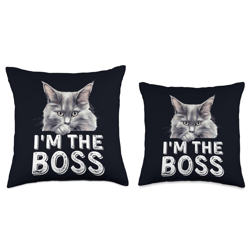 I'm The Boss Funny Nebelung Cat Lovers & Owners Throw Pillow