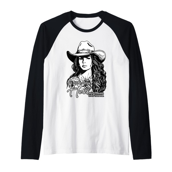 I'm the only Hell my Mama ever raised, Cowgirl Raglan Baseball Tee