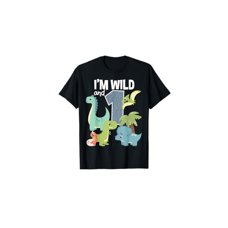 - 1 Year Old Dinosaurs Birthday Party Theme Gift Dinosaurs T-Rex, Tyrannosaurus, Triceratops, Brachiosaurus and the text I'm Wild and 1 with a Big Number 1. 1st Birthday Dinosaurs Gift Ideas for Toddler Kids Boys Girls Turning 1 Who Love Dinosaurs
