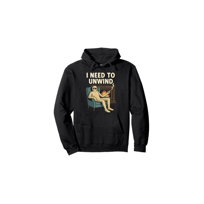 - Unique funny cute and lovely Halloween design with mummy relaxing in armchair by fireplace holding a cigarette with quote I Need to Unwind. Perfect for men and women who enjoy puns, spooky humor and horror characters. Awesome Tees for adult men and women!