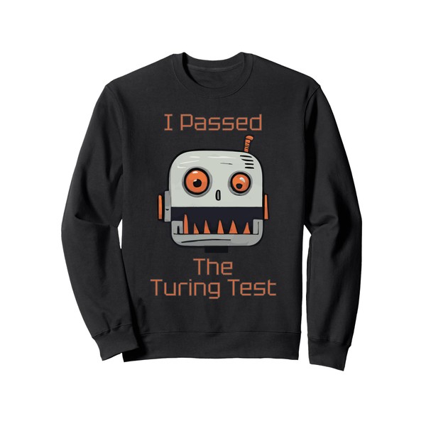- Design features a crazy robot graphic with the text "I Passed The Touring Test".