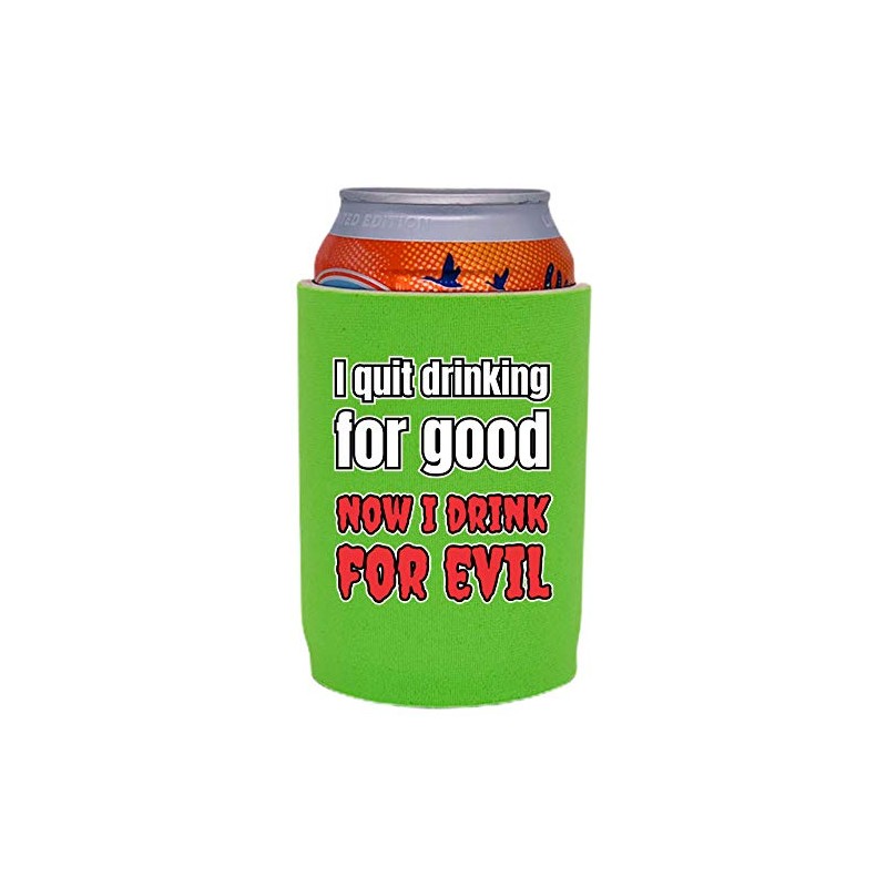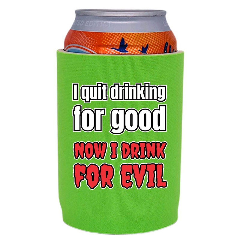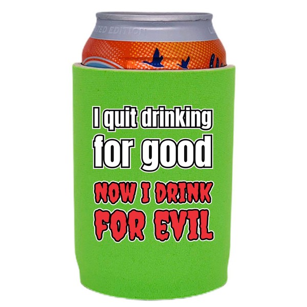 I Quit Drinking For Good, Now I Drink For Evil Full Bottom Can Coolie (Bright Green, 2 Pack)