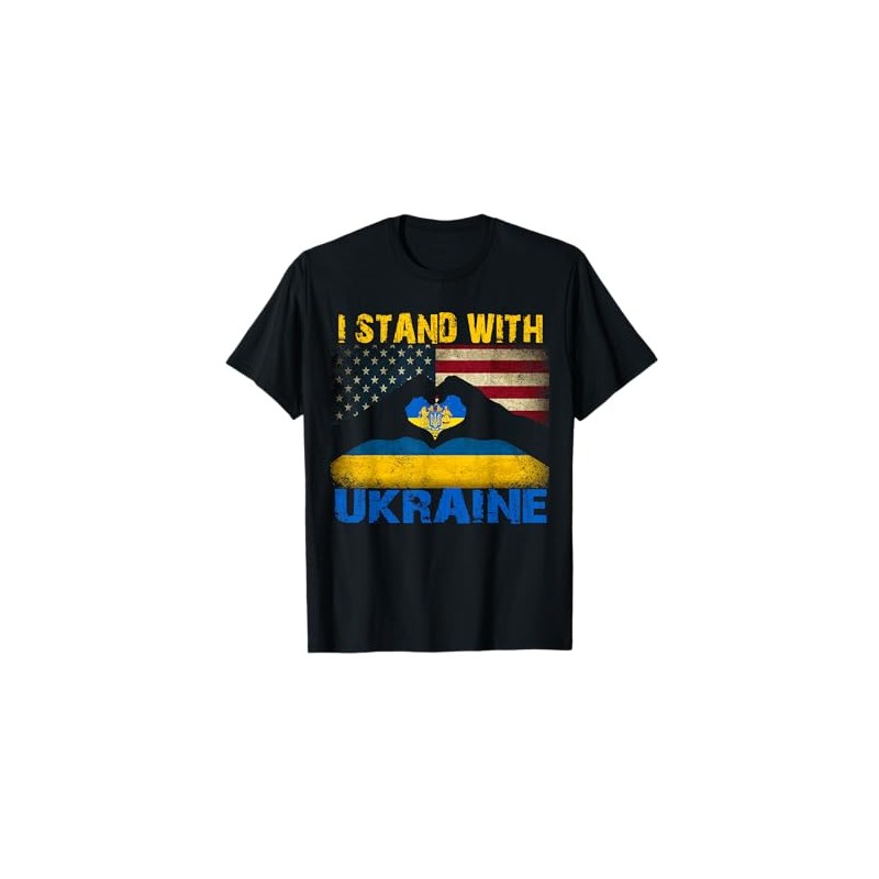 - I Stand With Ukraine Tee. Patriotic artwork with American and Ukrainian flags symbolizing close friendship between two nations