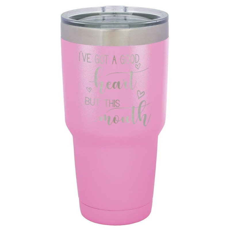 I'VE GOT A GOOD HEART BUT THIS MOUTH Engraved Light Purple 30 oz Tumbler With Straw and Slide Top Lid | Stainless Steel Travel Mug | Compare To Yeti Rambler Idea