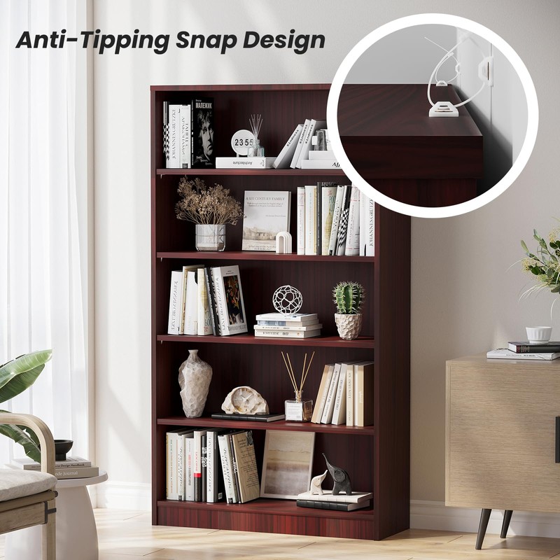 i-VTIES Bookcase Adjustable Storage Shelves,5-Tier Modern Wood Bookcase for Bedroom,60-Inch Bookshelf, Office, Living Room & Library(Mahogany)