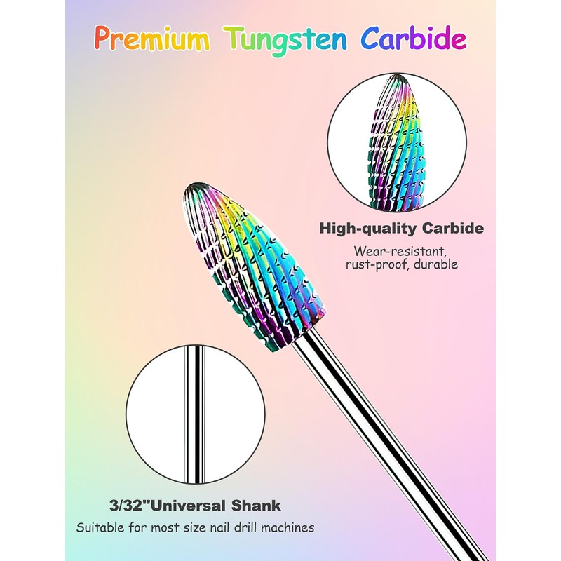 • Premium Material: All drill bits are made of high-quality tungsten carbide which is a hard material, wear-resistant, rust-proof, durable sturdy enough to remove hard gel nails, creating less dust with little friction and heat. You can be sure that these cuticle drill nail bits will work for a long time.