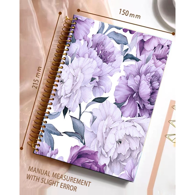 iampanda Spiral Journal Notebook,Strong Twin-Wire Binding with Premium Paper for Girl Women,Pretty Design 60 Sheets A5 College Ruled Notebook/Journal,Perfect for School Office Home Gifts,Purple Floral