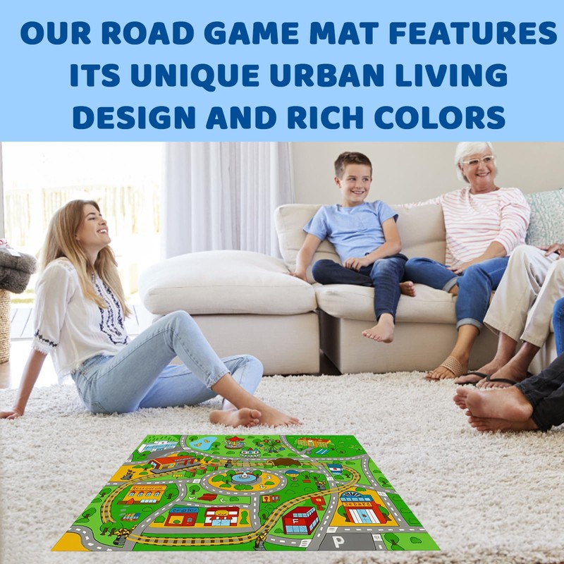 - đź§ Educational Fun: Boost Skills with This Road Mat for Toy Cars. More than just a car rug, this road mat for toy cars is an educational tool. It aids in developing spatial cognition, logical thinking, and an understanding of urban environments. Watch as children engage in enriching play with this fantastic car play mat.
