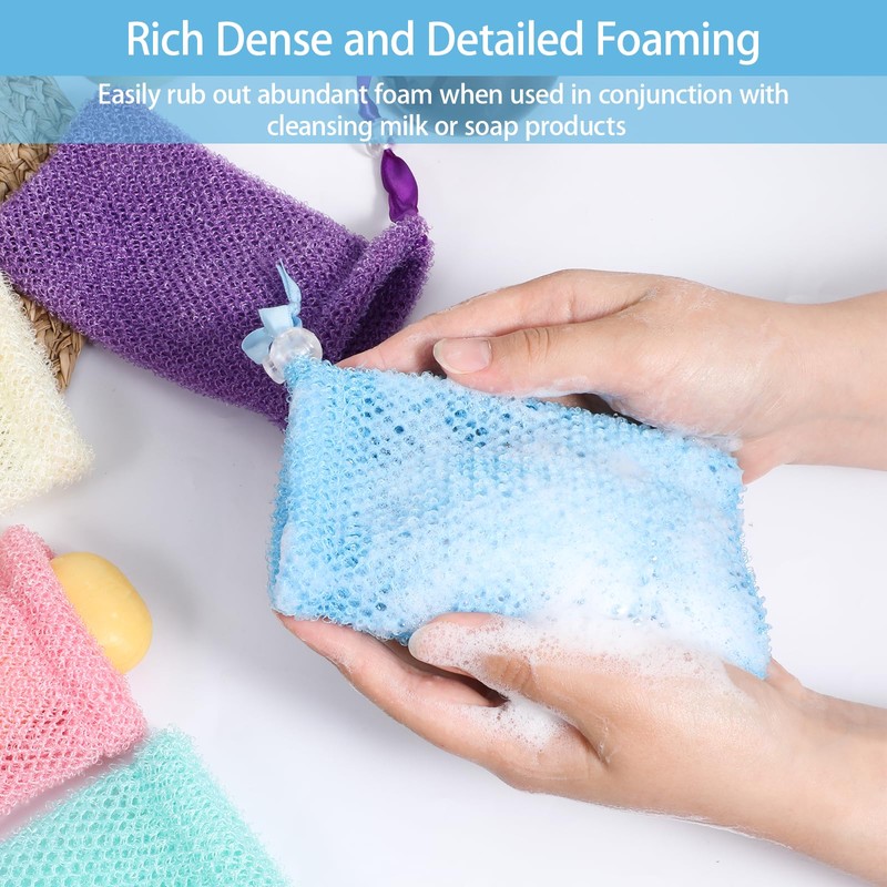 - 【Reusable】: Our exfoliating soap bag is durable and reusable. Wash it after each use, hang it up to dry quickly, convenient for next use, and it is a good tool for your daily bathing.