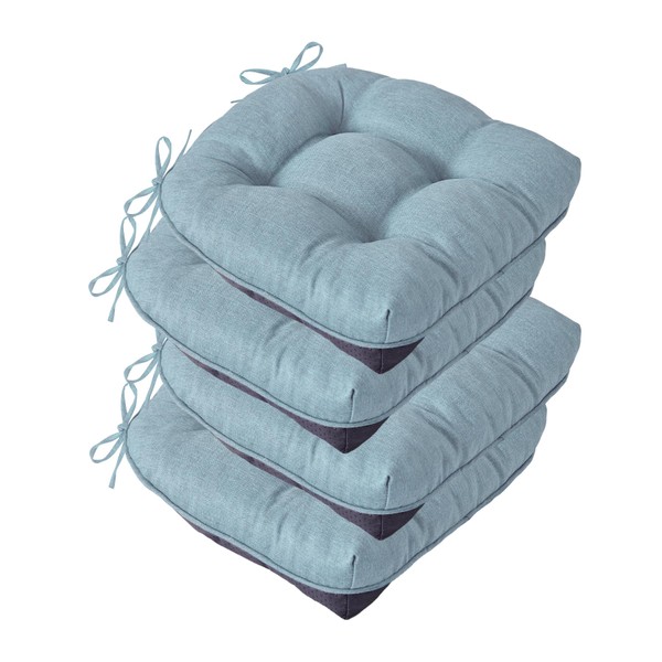 IASEAHK Chair Cushions for Dining Chairs, Seat Cushions for Kitchen Chairs, Indoor Seat Cushions with Ties, Tufted Foam Chair Pads, Non Slip Chair Cushions Set of 4, 15.5" x 15.5" x 4", Light Blue