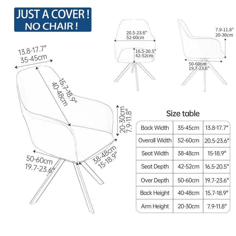 - ✔Size:Cover for most swivel desk chair:back height(above seat): 40-48cmcm/15.7-18.9inch,back width:35-45cm/13.8-17.7inch,overall width: 52-60cm /20.5-23.6inch,seat depth: 42-52cm/16.5-20.5inch,seat width: 38-48cm/15-18.9inch,Over Depth: 50-60cm/19.7-23.6inch,arm height:20-30cm/7.9-11.8inch .Please take care of the size before purchasing.