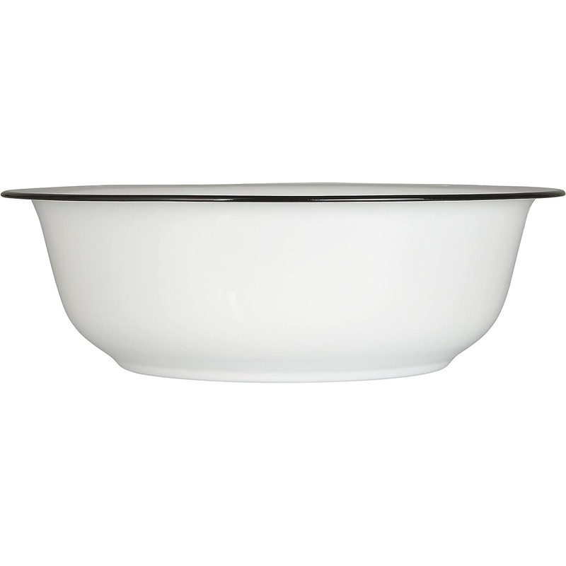 Product Number: IL00938 / 0464-11White large enamel washing up bowl with black rim by Ib Laursen. Beautiful piece that will add a farmhouse charm to your bathroom. Can be also used in the kitchen and garden.