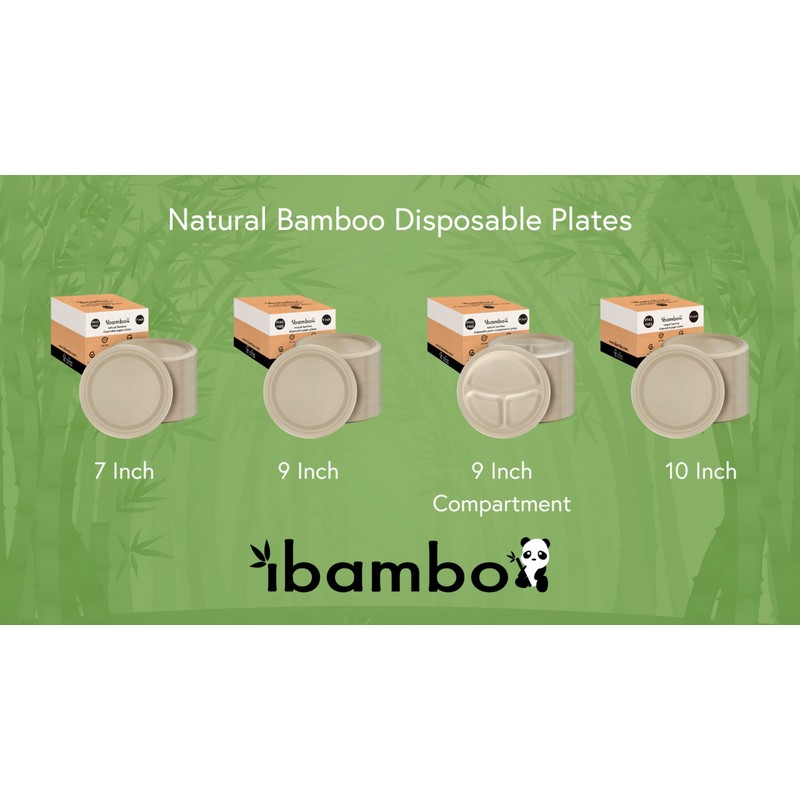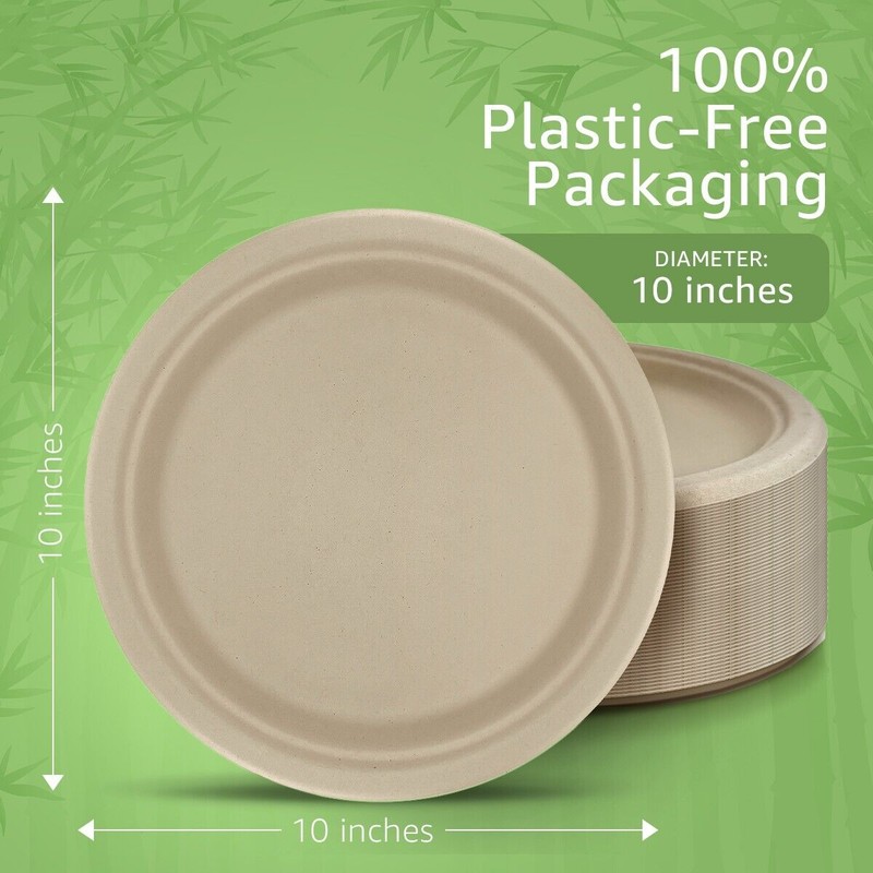 - Eco Friendly Bamboo Plates 🌱- Ibambo's 10 inch disposable bamboo plates come in a pack of 500 and are crafted from our signature blend of bamboo & bagasse. The PFAS-free, compostable plates are an ideal alternative to traditional plastic or paper plates by not only reducing waste but also minimizing environmental impact.