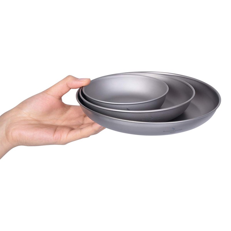 iBasingo Camping Titanium Plate Set Small Serving Plate Outdoor Ultralight Picnic Metal Tableware Set Cookware for Food Meat Fruit Sauce Dessert 3 pcs/Set Ti1104T