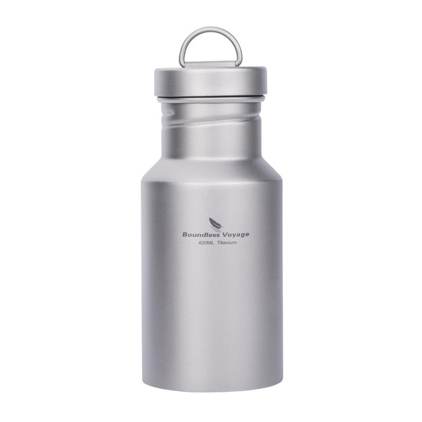 iBasingo Titanium Water Bottle Outdoor Camping Single Layer Metal Drinking Flask Wide Mouth Leak-Proof Reusable Sport Cycling Hiking Picnic Climbing Running Tea Coffee Beverage Bottle (400ml Ti3251D)
