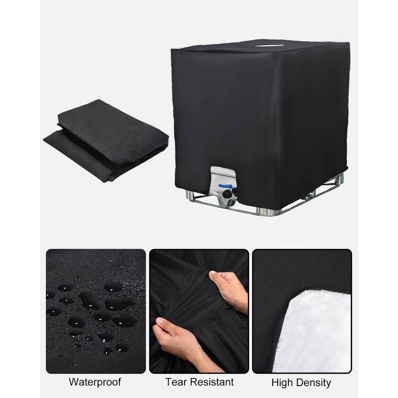 - IBC Tank Cover, Anti-UV Protective Cover for Water Tank 1000L, Protective Cover, Suitable IBC Tank Accessories, Protective Tarpaulin Rainwater Tank Container Cover, 120 x 100 x 116 cm, Black