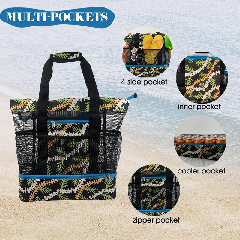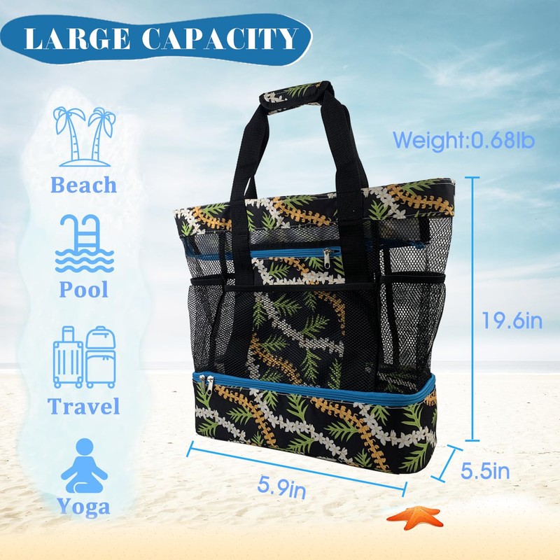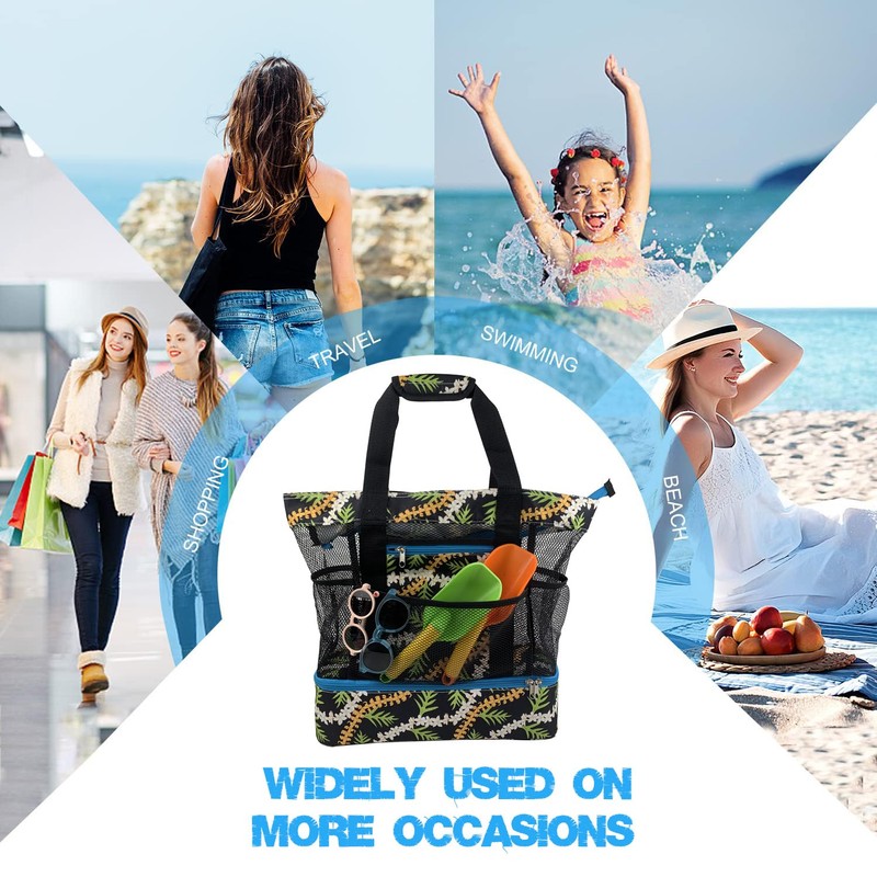IBEIKER Beach Tote Bag - Waterproof, Insulated Cooler, Breathable Mesh for Pool, Travel, Camping, Shopping (Family & Vacation Essentials)
