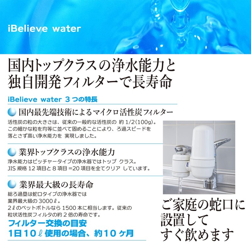 iBelieve Water Purifier, Faucet Type, 1 Cartridge Included, High Removal, 20 Items Clear, Backflow Cleaning
