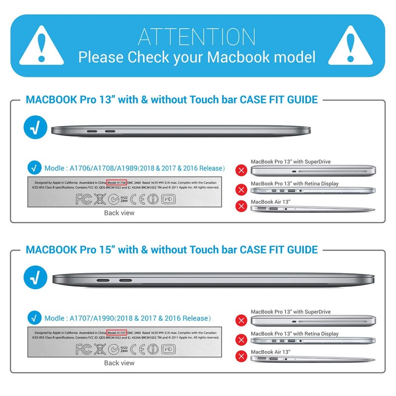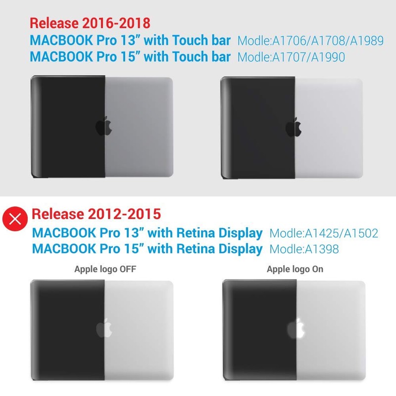 - 【Compatibility】 - Compatible with Macbook Pro 15 Inch Case Models: A1990/A1707 with Touch Bar & Touch ID -- Release in 2019 2018 2017 2016 (A1990 / A1707, Release 2019 -- MV902LL/A, MV922LL/A, MV912LL/A, MV932LL/A and 2018 -- MR932LL/A, MR942LL/A -- and 2017 -- MPTR2LL/A, MPTU2LL/A, MPTT2LL/A, MPTV2LL/A -- Release 2016 -- MLH32LL/A , MLW72LL/A, MLH42LL/A, MLW82LL/A). NO Cut Out design, transparency is different from color to color.