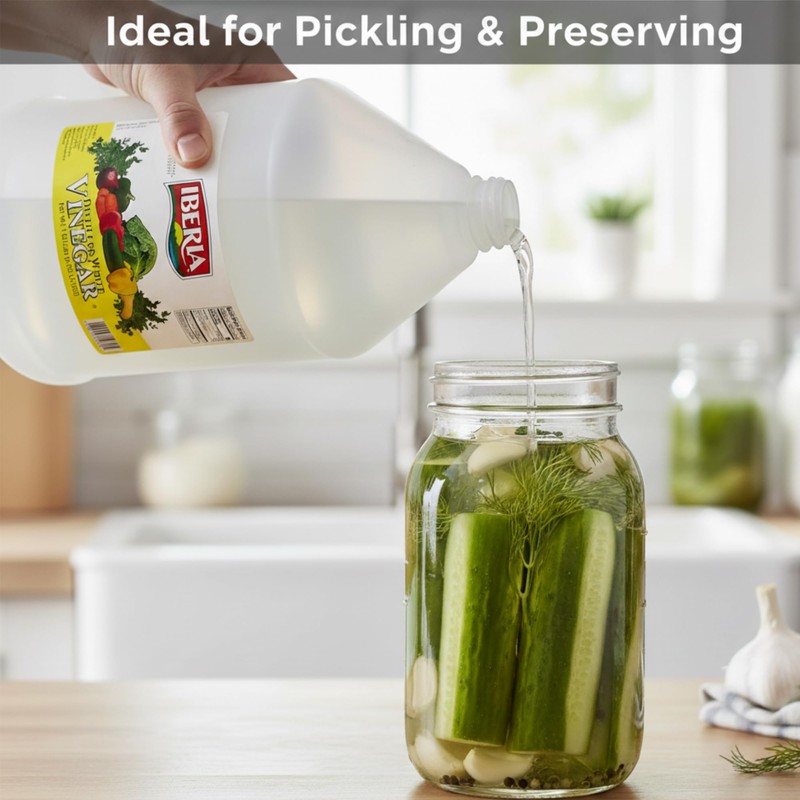 Iberia Distilled White Vinegar, 1 Gallon, is your ultimate solution for both cooking and cleaning. Made from 100% pure, distilled vinegar, it delivers a clean, natural taste that enhances your recipes, from pickling vegetables to marinating meats and salads. This multi-purpose vinegar is also an eco-friendly cleaner, perfect for deodorizing, shining glass, and tackling tough household messes, all without harsh chemicals. With its large 1-gallon bottle, it provides excellent value for families, restaurants, or anyone who needs vinegar in high volume. Completely free of additives and preservatives, Iberia vinegar is a safe and natural choice for those seeking a gluten-free, non-GMO, and versatile product. Trusted for over 50 years, Iberia continues to offer high-quality, authentic ingredients that families rely on for both everyday cooking and household needs.