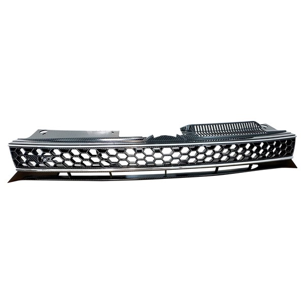IBESTWOLF Front Grille Honeycomb with Chrome Trim for 2010 2011 2012 2013 2014 VW MK6 Golf GTI Sport, Carbon Fiber Print Grill w/o Logo Base