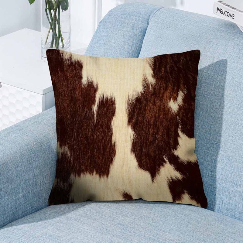 IBILIU Cowhide Print Throw Pillow Covers 18X18,Cow Hair Cow Skin Pattern Brown and White Cotton Linen Cushion Cases Decorative Pillow Cases for Couch Sofa Bedroom