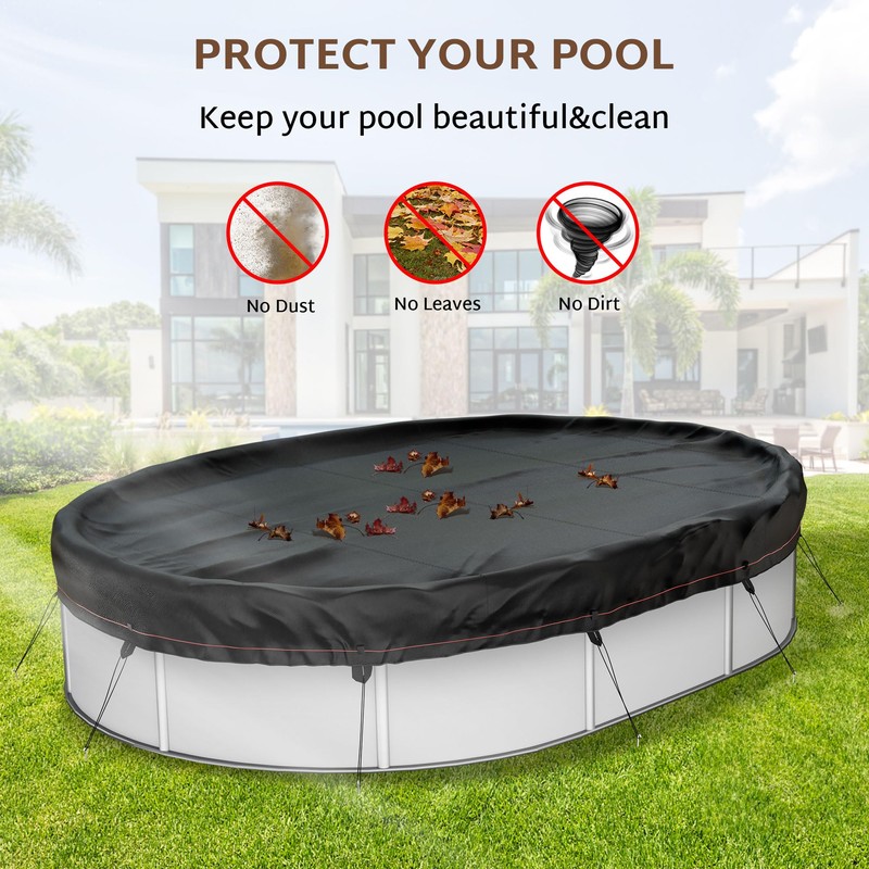 iBirdie Winter Pool Cover fit 14' x 30', 15' x 31' Above Ground Oval Pools, Fade-Resistant Tear-Resistant Waterproof and Weatherproof for Outdoor Protection, Black, Fabric 500D
