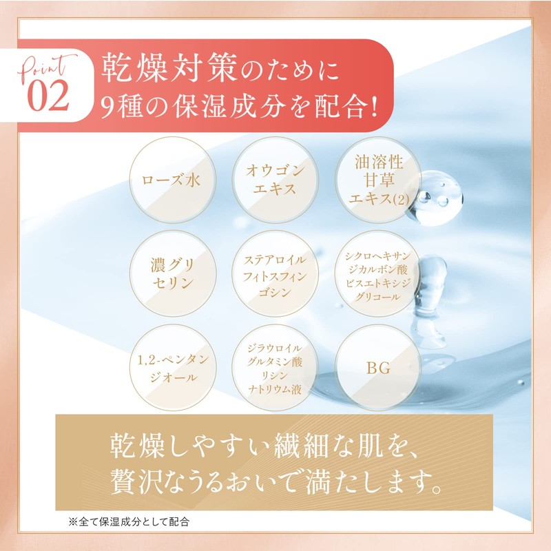 • 8 types of hydrating ingredients to care your skin damage with at the same time.