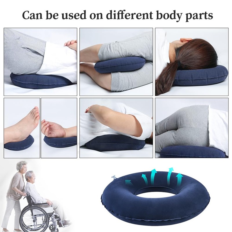 - Size -When fully inflated the outer diameter of this donut cushion measures 45cm (17.7in) with an inner diameter of 16cm (6.2in). The height of the cushion is 11cm (4.3in). Suitable for back, buttocks, and crotch