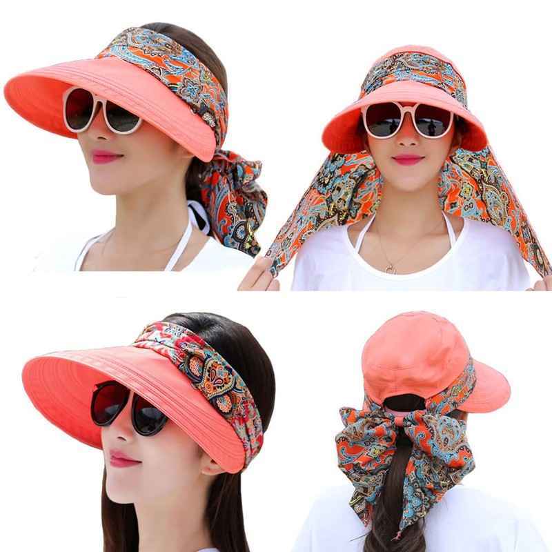 - MULTI-USE SUN HAT: this hat in plain color with flora band and removable lengthen neck scarf, top with zipper closure to transfer it to a empty top sun visor, beautiful and functionable, enable you to wear it for most purposes