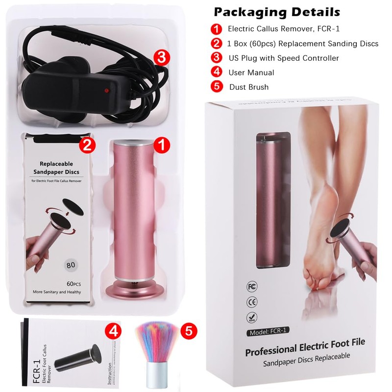 - WITH 60 REPLACEMENT SANDPAPERS: 60 replaceable self-adhesive sandpaper discs that stick to the electric callus remover very firmly and are also easy to remove, 1 sandpaper for 1 person, perfect for family use.