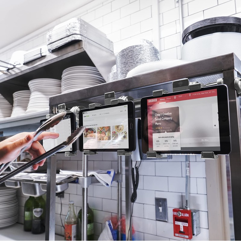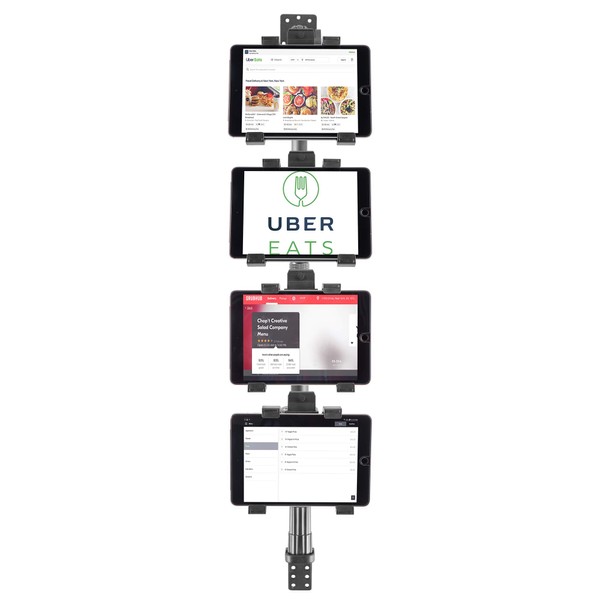 - STURDY- Has for points of contact for each tablet holder for a secure hold. This Point of sale tablet mount features four tablet holders that are perfect for running delivery applications, such as, DoorDash, Uber Eats, Postmates, Yelp, etc.