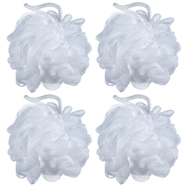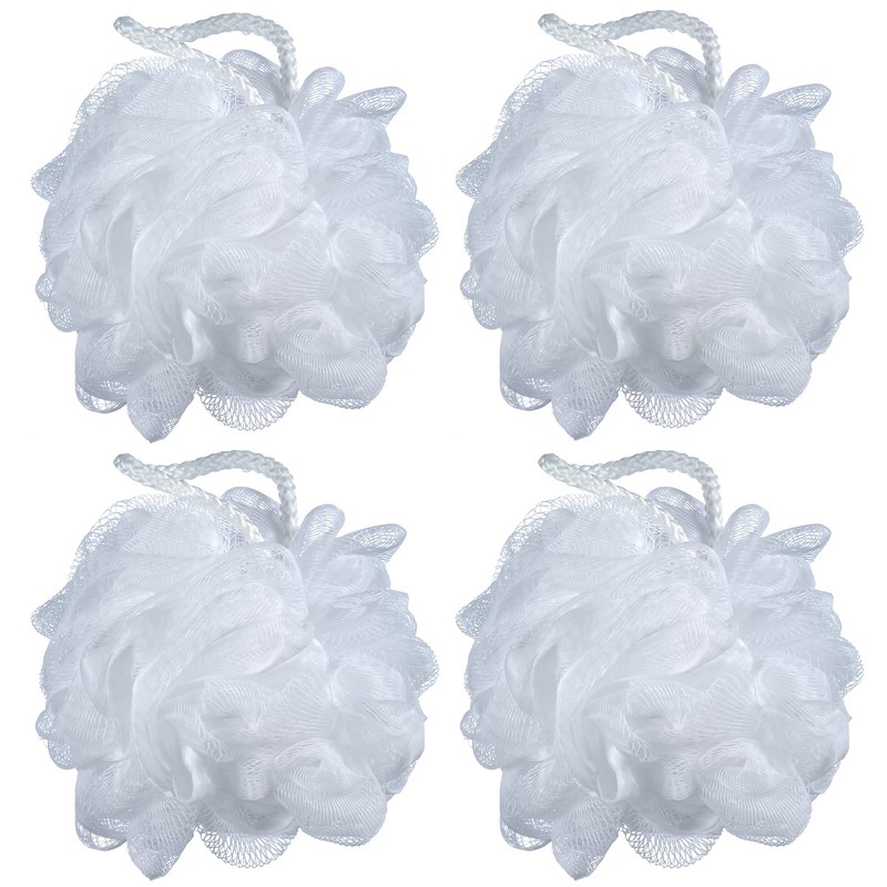 iboodi - Lote de 4 esponjas de malla para baño (60 g), color blanco