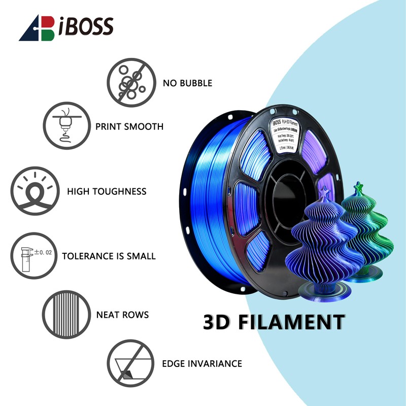 iBOSS Silk Tri Color Blue Green Purple PLA PRO Filament, 3D Printer Filament 1kg 1.75mm +/ -0.02mm PLA+ 3D Filament, Clog-Free Shiny 3D Printer Filament, Fit Most 3D Printers(Silk Blue Green Purple)