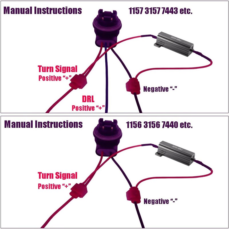 - NOTICE! Load Resistors heat up like light bulbs and get super HOT when working. Make sure you mount them away from any wires or plastic.